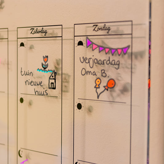 Communication facile : La taille des agendas en tableau blanc facilite la communication. Tout le monde peut facilement écrire quelque chose et voir exactement quel jour cela doit être fait.